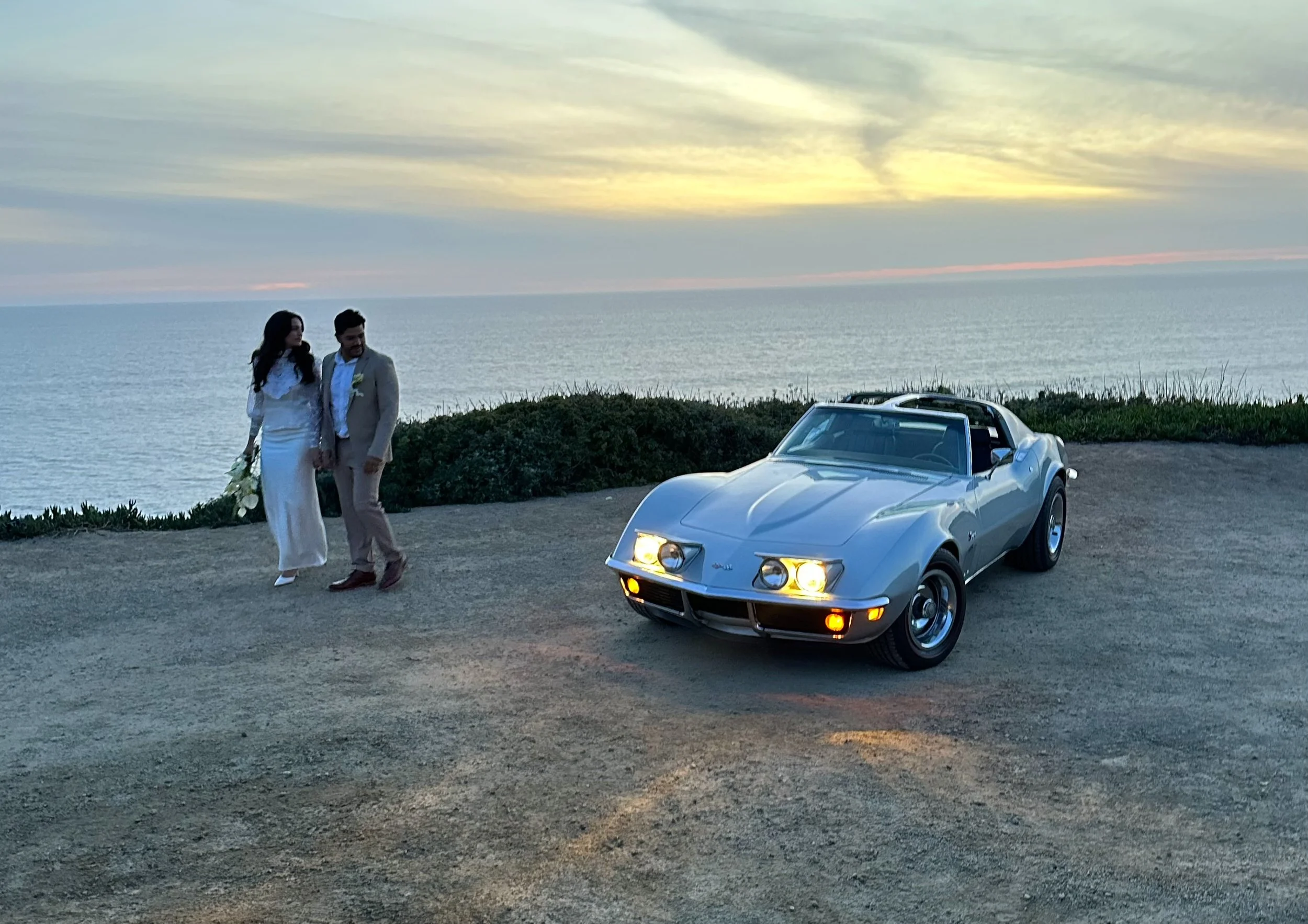 For a world-class engagement session along Highway 1, a Silver 1969 Corvette Stingray is the ultimate co-star. Pitting the sharp, aggressive lines of this American masterpiece against the rugged cliffs of Big Sur, the coastal elegance of 17 Mile Drive, or the iconic village architecture of Carmel by the Sea creates a visual narrative of adventure and timeless cool. It elevates a coastal photoshoot into a high-fashion editorial.