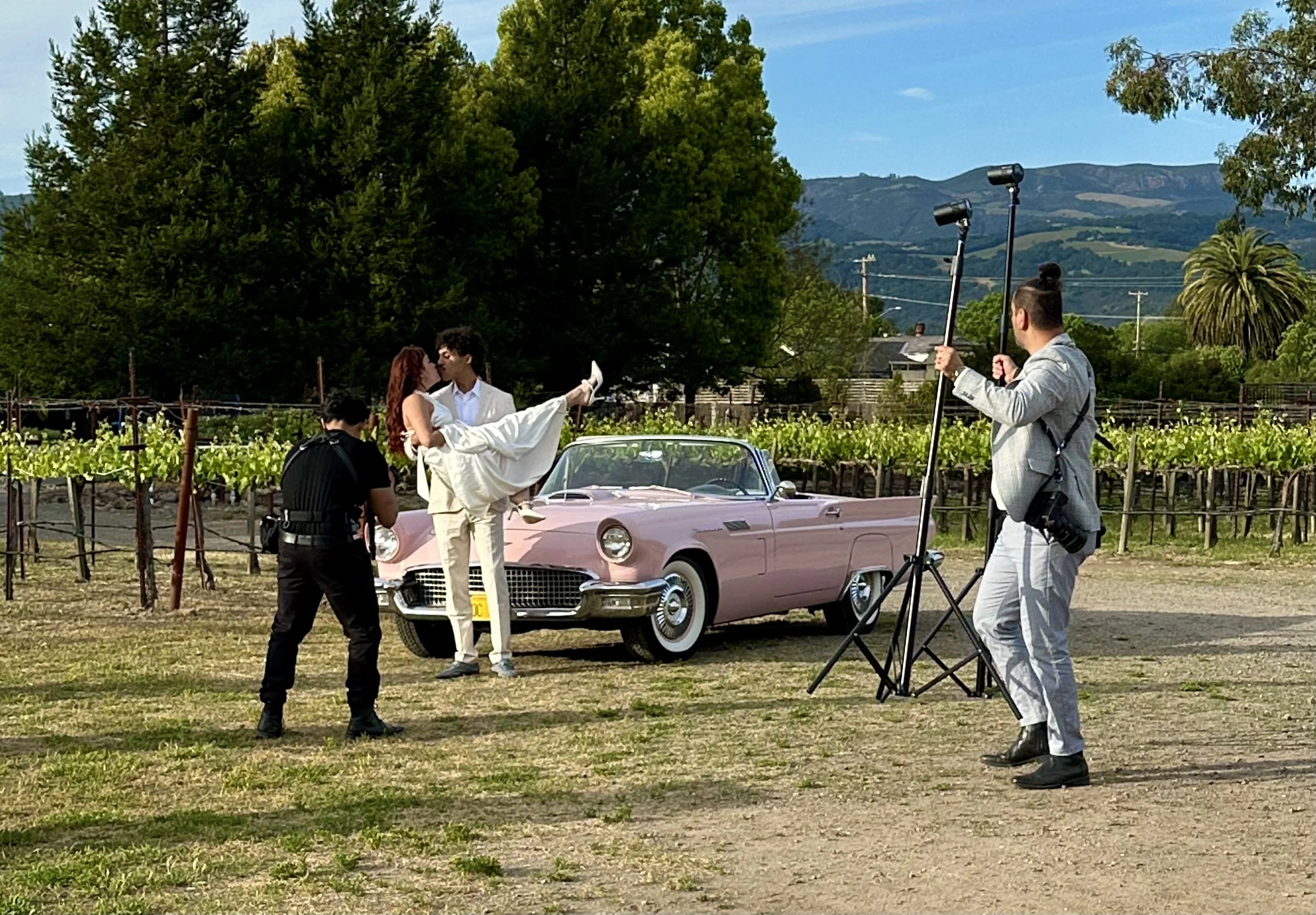 Our Pink 1957 T-Bird is a frequent favorite for Wine Country weddings, providing a stunning contrast to the rolling hills of Carneros and the rustic charm of Sonoma Square. We understand the logistics of navigating the scenic routes of Highway 29 and the Silverado Trail, ensuring your special day in the North Bay is seamless and sophisticated."